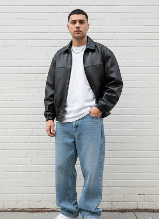 Sold outOVERSIZED BLACK LEATHER JACKET